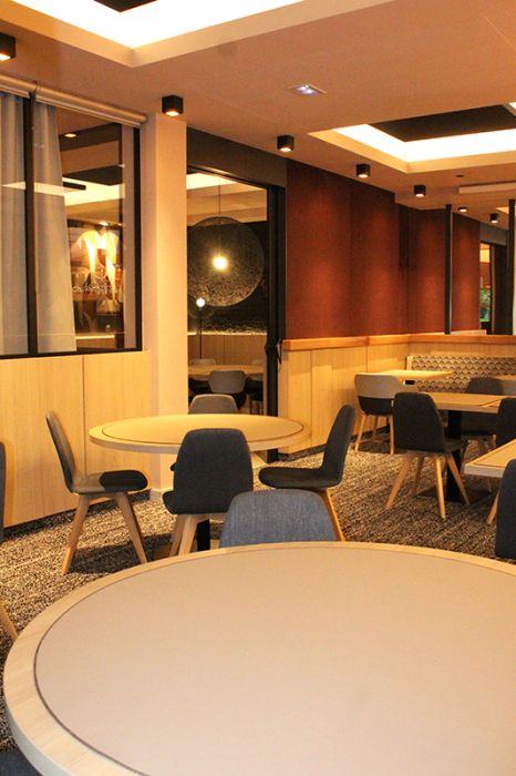 Dans l’assiette ? Une cuisine traditionnelle concoctée à partir de produits frais, de préférence locaux, qui s’aventure volontiers du côté de l’Italie et de l’Asie pour l’inspiration. « Je m’attache à soigner les préparations, les fonds, les marinades… Pour moi, la signature se joue beaucoup dans les sauces. Qu’elles accompagnent subtilement une viande ou un poisson, toutes mes sauces font l’objet d’une attention toute particulière, d’une recherche et d’un travail approfondis », souligne Loïc Roussey, qui revendique également son côté « girly » dans le dressage des assiettes. Les clients adhèrent. Le restaurant affiche un beau démarrage et monte en puissance avec l’été. « Nous avons la chance de disposer d’une grande terrasse (75 places) dans un cadre idyllique, puisqu’elle donne sur les jardins du Château de Courcelles (site Europa-Courcelles) », souligne Christophe Roussey. Réaménagée avec soin (80 couverts dedans), plusieurs espaces permettent aussi d’accueillir des événements, associatifs, familiaux et professionnels.